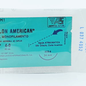 $38.96 IVA IncluidoSuturas de nylon monofilamento con aguja RCE-4, marca American Suture, disponibles en diferentes calibres. Alta resistencia y fácil manipulación para procedimientos quirúrgicos.