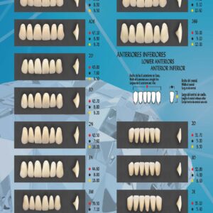 Disponibles en versiones anteriores y posteriores, superiores e inferiores, en diversos modelos anatómicos (2E, 3N, 3P, 3L, 30M, 34L…) y tonos VITA (A1–C1) para una adaptación estética y funcional precisa.