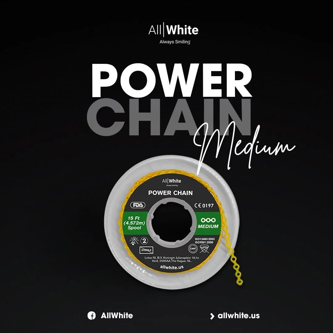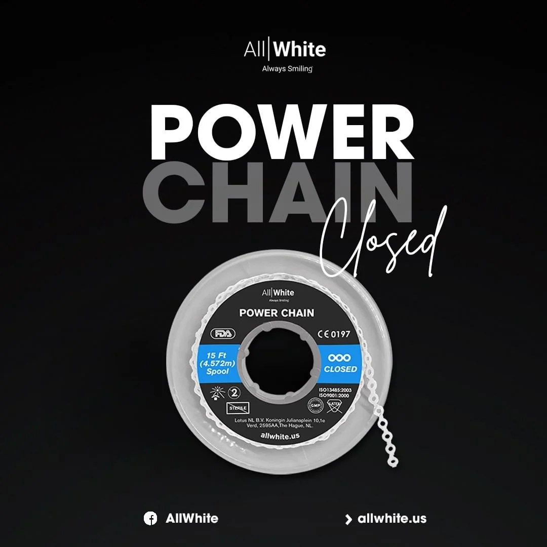 Las Cadenas Elásticas All White Power Chain están fabricadas en poliuretano de alta calidad, diseñadas para ofrecer soporte, tracción y estabilidad de color durante todo el tratamiento ortodóntico.