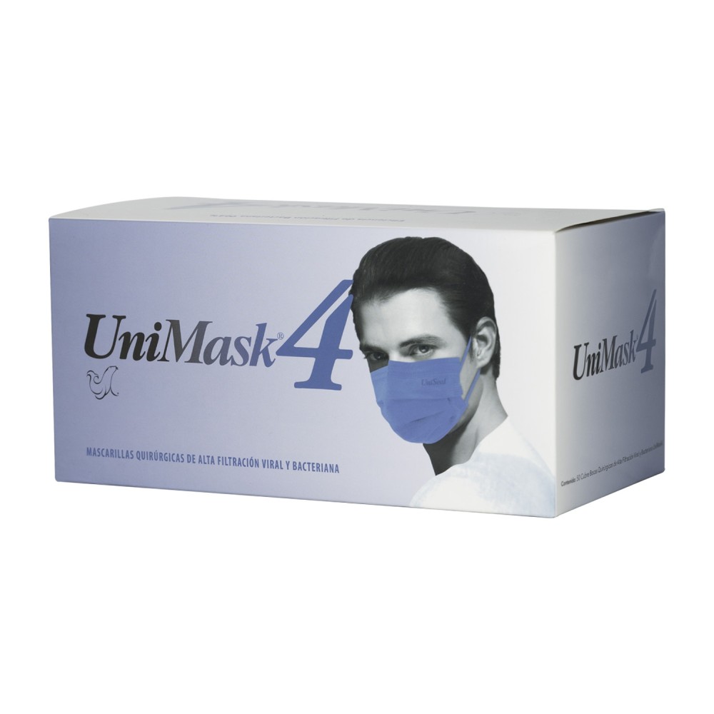 UniSeal UniMask4 son Cubrebocas Quirúrgicos tetracapa plisados para cubrir nariz y boca. Estos cubrebocas son desechables y cuentan con un adaptador nasal anatómico.