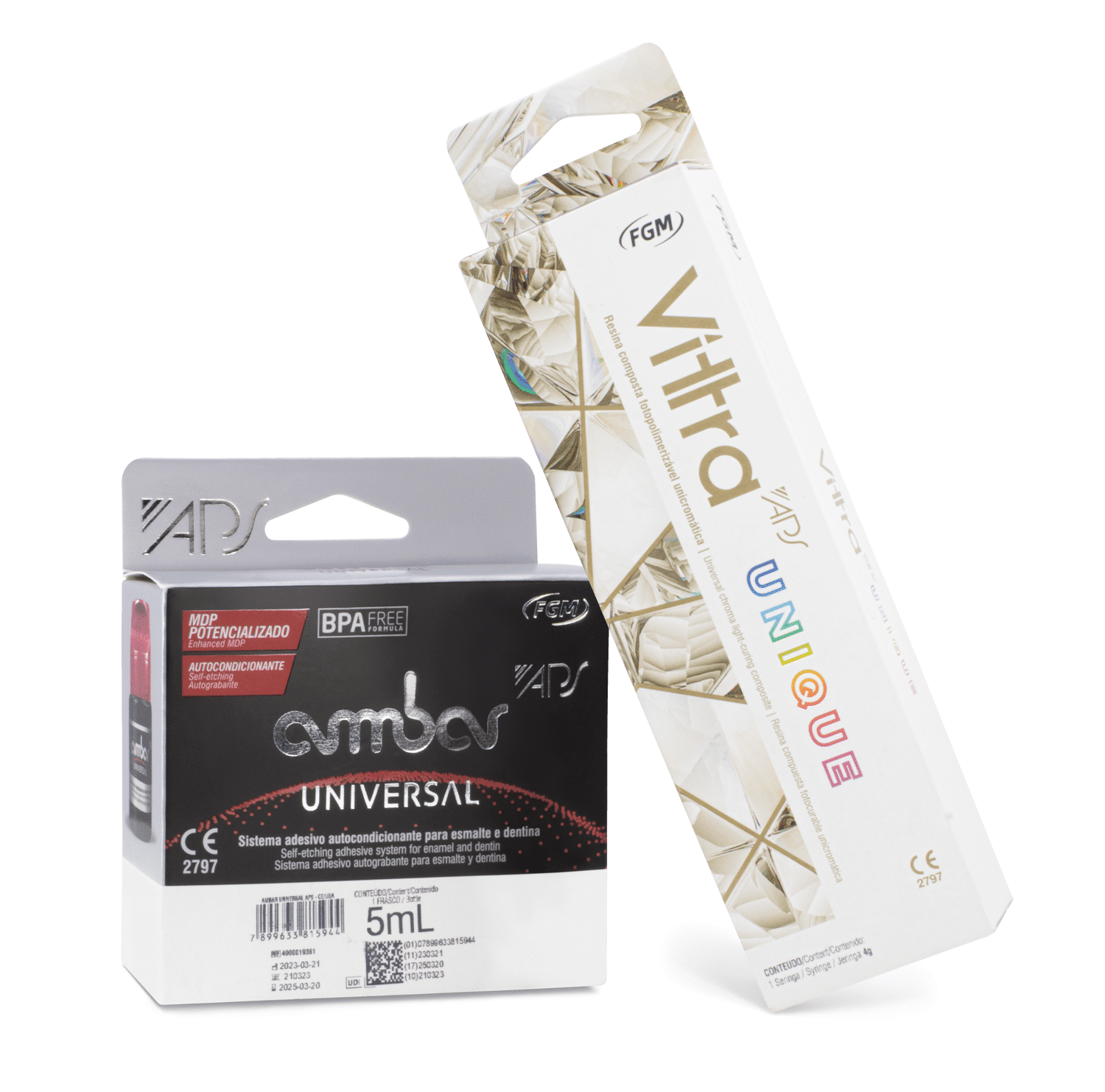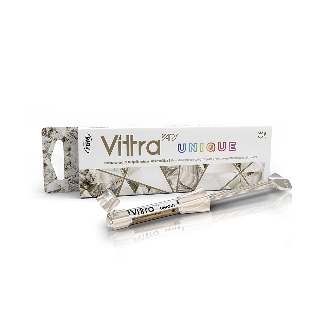 • Resina Vitra APS Unique 4 g: resina nanohíbrida con tecnología APS que ofrece estética excepcional y excelente mimetización en diferentes tonos dentales.