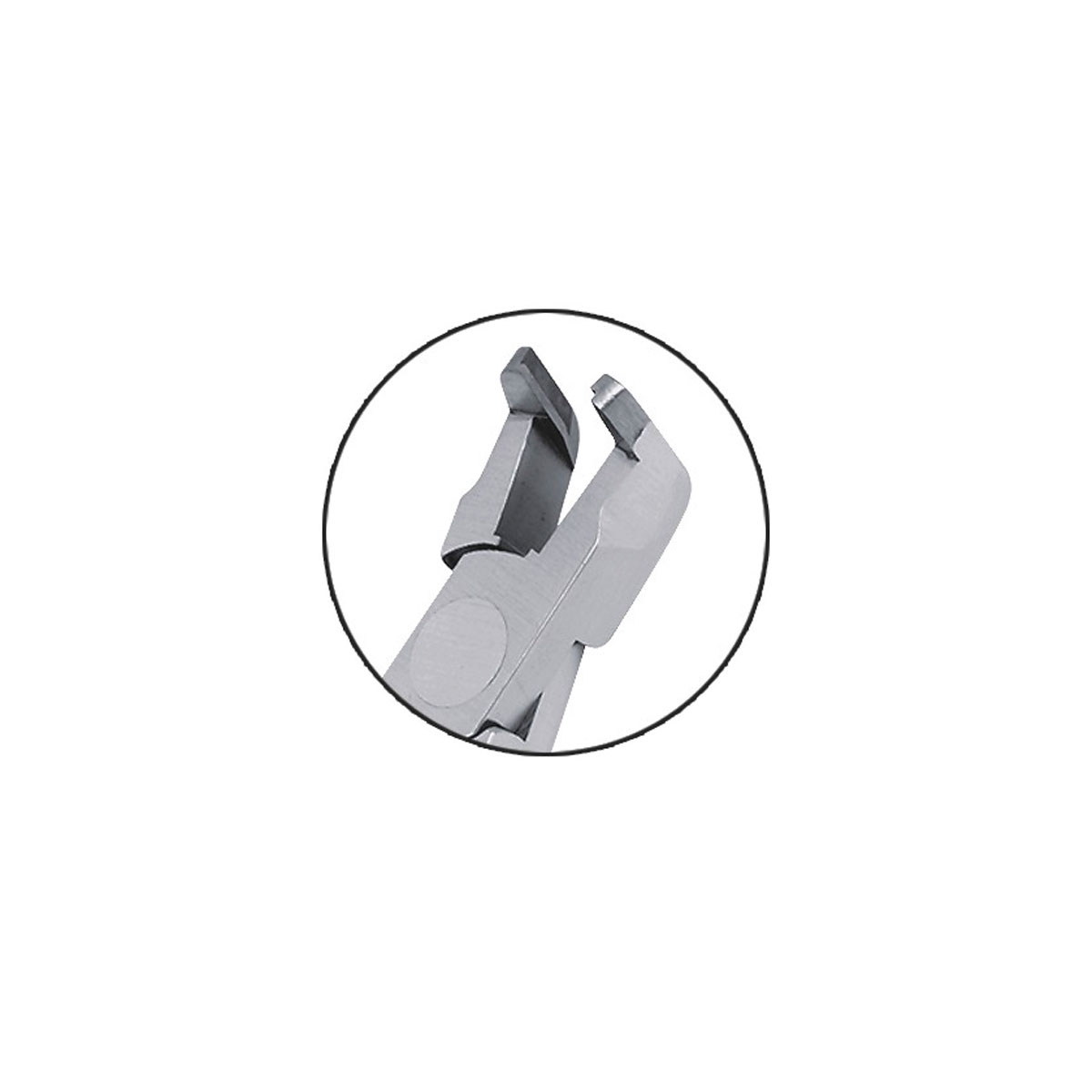 La Pinza de Corte Distal Mango Corto de OrthoPremium es un instrumento esencial en ortodoncia para el corte final de arcos o alambres detrás del tubo molar.