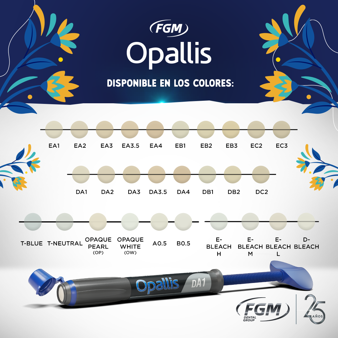 La resina Opallis de 4 g es un material restaurador fotopolimerizable que ofrece una estética natural y un manejo clínico superior. Gracias a su balance entre carga inorgánica y matriz orgánica, proporciona alta resistencia mecánica, excelente adaptación marginal y una textura ideal para el esculpido. Indicada para restauraciones anteriores y posteriores, su gama de colores y facilidad de pulido hacen de Opallis una opción versátil y confiable en odontología estética.